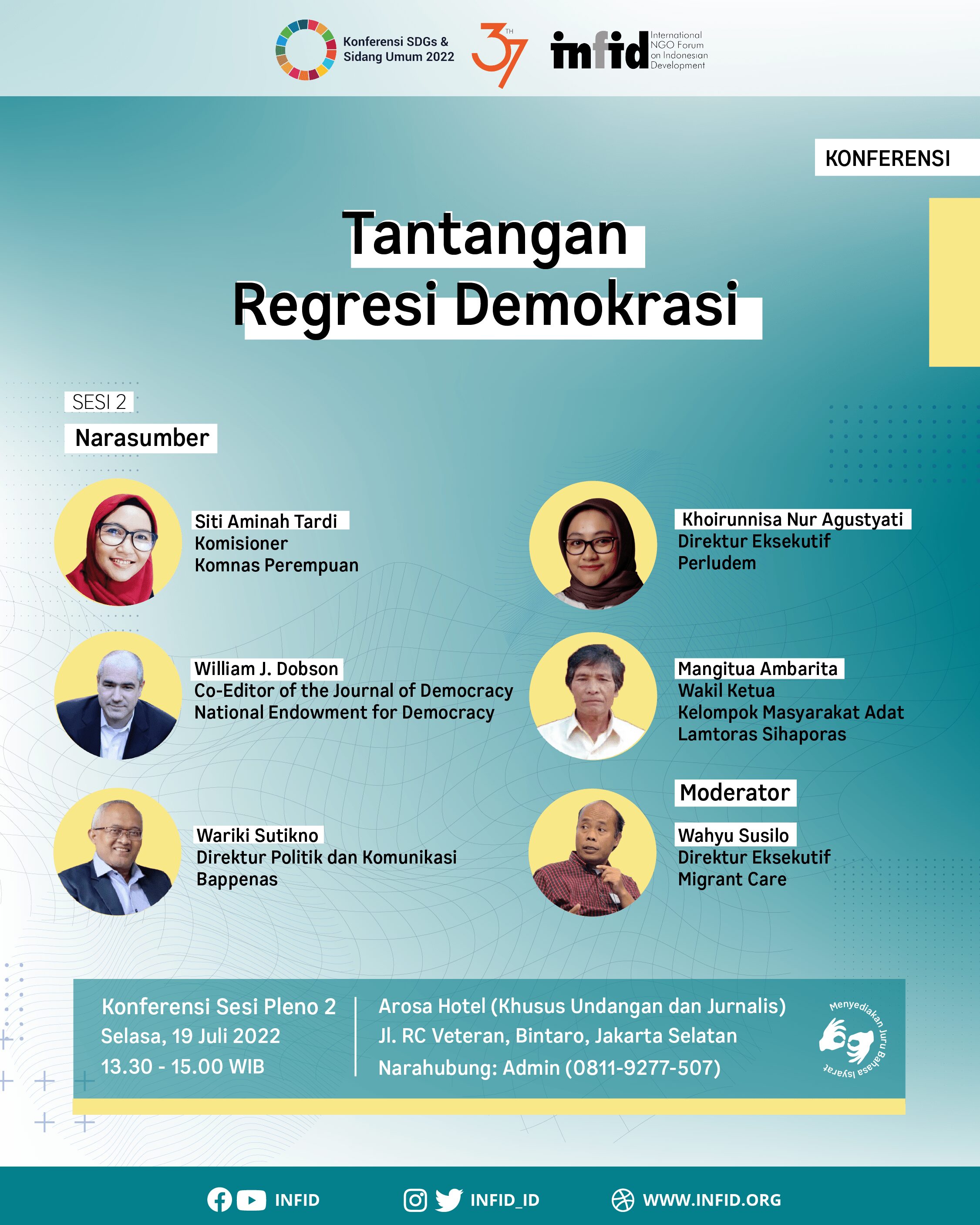 IBTimes.ID, Hotel Arosa, Jakarta, Selasa, 19 Juli 2022 – Semakin memburuk atau membaiknya regresi demokrasi di Indonesia tergantung pada bagaimana kita menyikapinya. Upaya untuk memperbaiki demokrasi yang sedang mundur dapat dilakukan melalui jalur institusional, ruang publik, kepartaian, hingga keadilan hukum. Namun ketika semua hal tersebut menunjukkan indikasi pada kecenderungan tertentu, maka harapan lain dari situasi ini adalah penguatan masyarakat sipil.