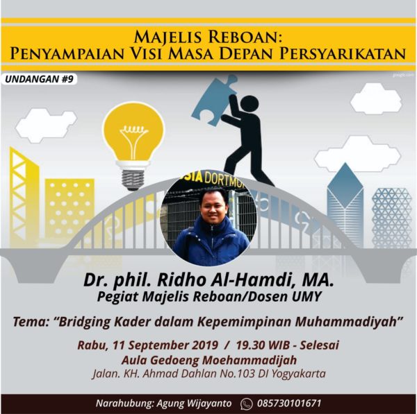Pada Hari Rabo (11/09/2019) untuk edisi yang kesekian sekalinya, para pegiat Majelis Reboan yang didominiasi oleh mayoritas kaum muda mendiskusikan hal-hal aktual terkait dengan gerakan Muhammadiyah. Kebetulan saya pribadi diminta menjadi pemantik pada diskusi kali ini. Melalui ruang diskusi di Markaz 103 bersejarah tersebut, ide-ide segar dari anak muda bisa diluapkan untuk kemudian dikaji lebih mendalam relevansinya bagi kemajuan persyarikatan.