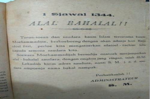 Anggota Majelis Pustaka dan Informasi (MPI) Pimpinan Pusat Muhammadiyah, Ghifari Yuristiadhi, menjelaskan bahwa jejak awal ucapan Halal Bihalal dalam bentuk media ditemukan dalam Soeara Moehammadijah No. 5 tahun 1924.