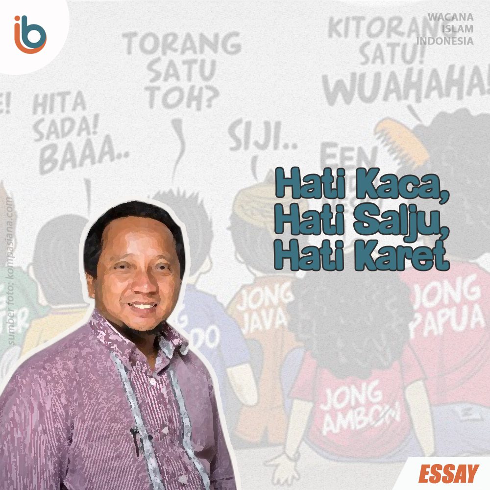 Mohon maaf, jika saya agak curiga, rupanya model hati kaca seperti inilah yang tengah menjadi gejala umum di kalangan sebagian besar anak bangsa kita. Mulanya kaca itu dihinggapi setitik debu prasangka dan curiga. Sayangnya, tak segera dibersihkan karena baru sebutir. Tetapi dalam alam keliaran informasi seperti sekarang ini, butiran debu prasangka dan fitnah itu ribuan jumlahnya, dan masing-masing berlomba menempel pada bidang kaca hati yang semula bersih. Akhirnya, kaca menjadi kotor dengan debu tebal yang hanya menghasilkan bayangkan yang kotor pula tadi itu.