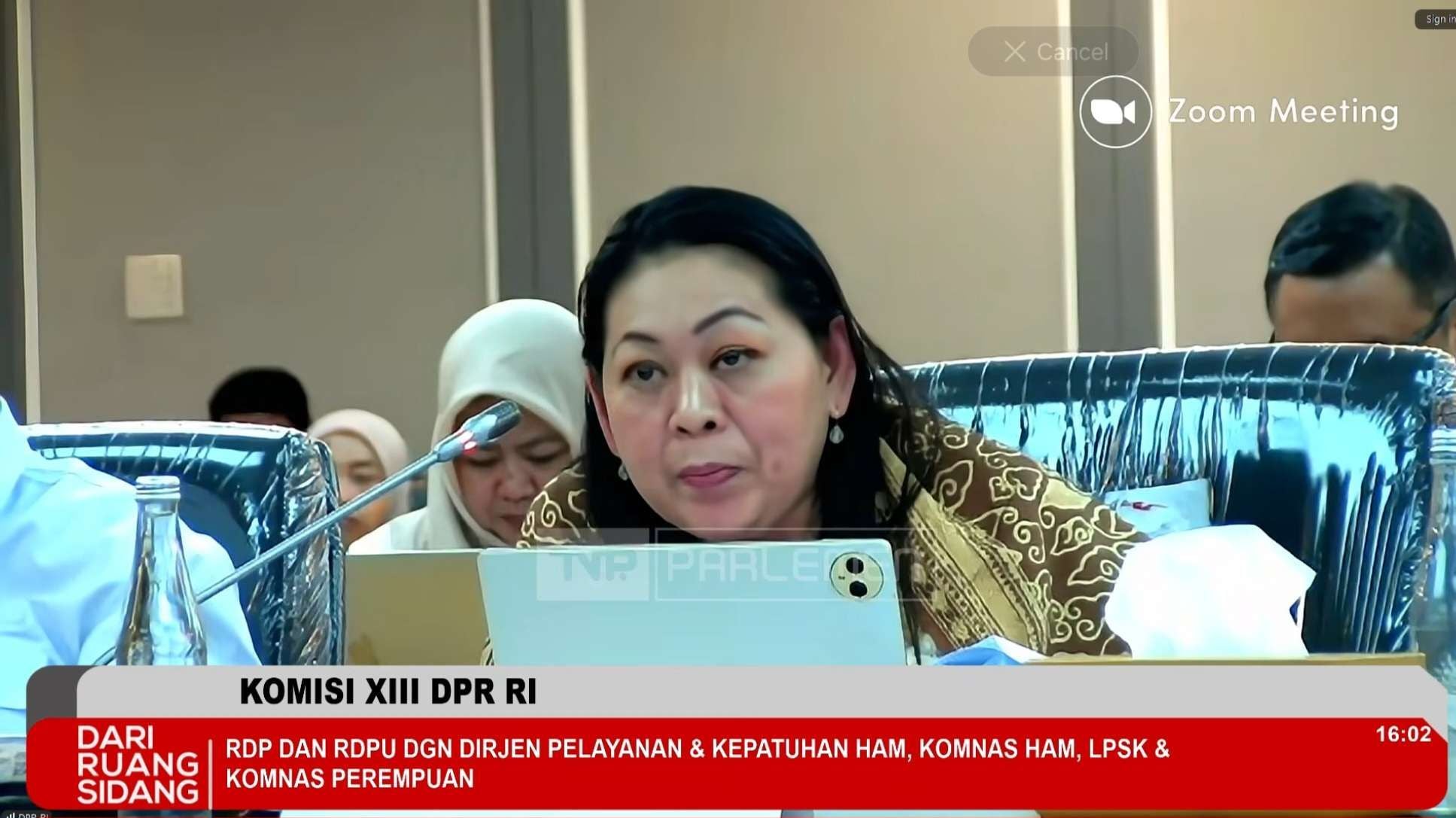 Pernyataan tersebut disampaikan Ratna Batara Munti dalam Rapat Dengar Pendapat (RDP) dan Rapat Dengar Pendapat Umum (RDPU) Komisi XIII DPR RI bersama Direktorat Jenderal Pelayanan dan Kepatuhan HAM, Komnas HAM, Lembaga Perlindungan Saksi dan Korban (LPSK), serta Komnas Perempuan.