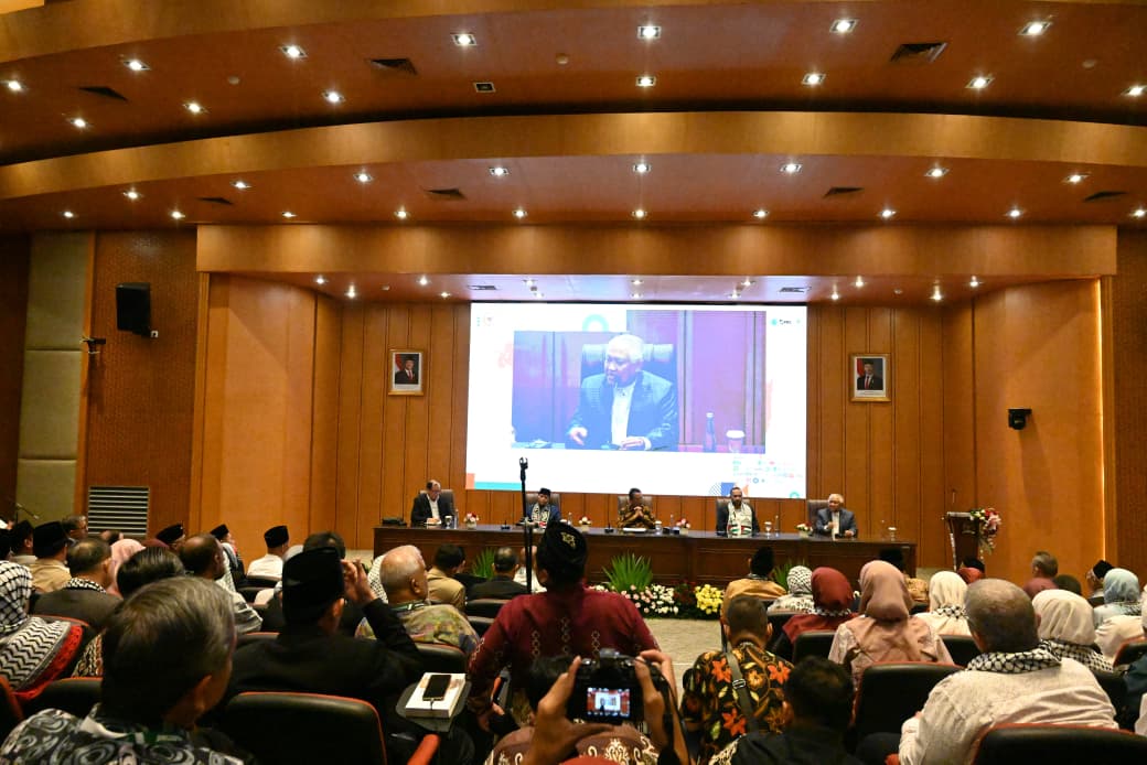 Sesi pleno pertama bertajuk “Geopolitik dan Palestina, Solidaritas Global, Dampak Masalah Palestina terhadap Asia–Pasifik, dan Prospek Perdamaian” menghadirkan Dr. Hidayat Nur Wahid, Prof. Dr. Din Syamsuddin, Ambassador Prof. Dr. Makarim Wibisono, dan Mr. Ahmed Atawnah, dimoderatori oleh RM. Michael Tene, M.A. Diskusi menyoroti bahwa konflik Palestina adalah isu moralitas global dan keamanan kawasan.