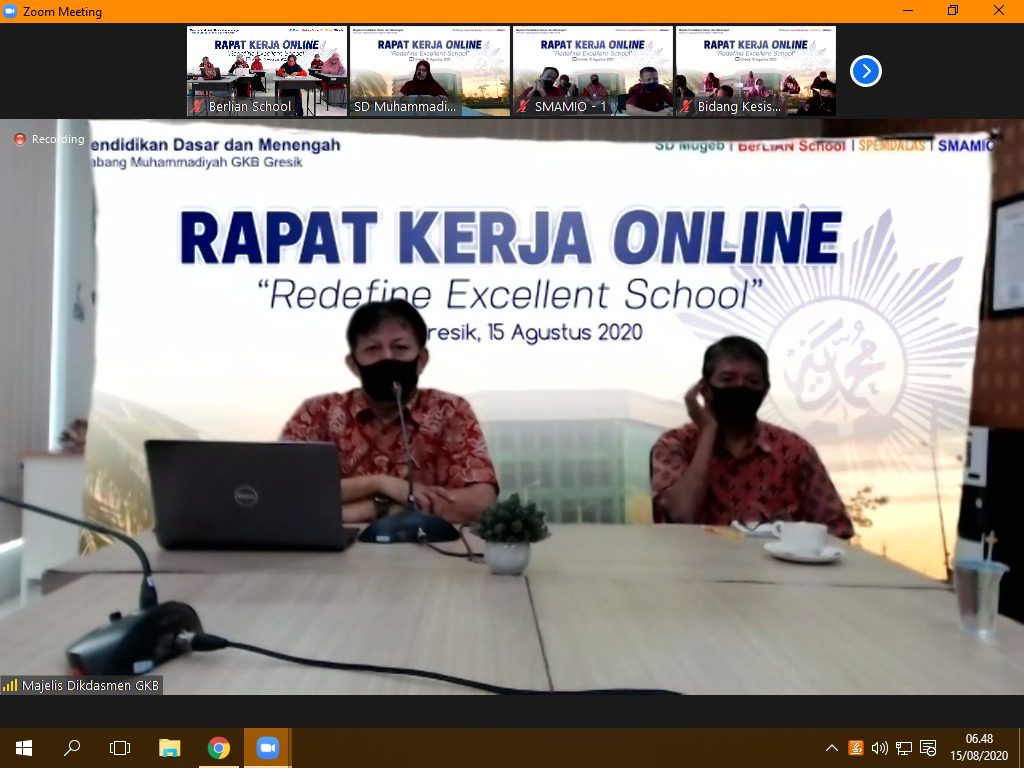 Raker virtual Sekolah Muhammadiyah GKB yang diselenggarakan Majelis Dikdasmen PCM GKB Gresik dilaksanakan pada Sabtu (15/8). Rapat Kerja (Raker) ini diikuti oleh Ketua Majelis Dikdasmen PCM GKB Gresik beserta 4 Kepala Sekolah, Wakil Kepala SD Muhammadiyah 1 GKB Gresik, SD Muhammadiyah 2 GKB Gresik, SMP Muhammadiyah 12 GKB Gresik, dan SMA Muhammadiyah 10 GKB Gresik beserta Koordinator Bidang.