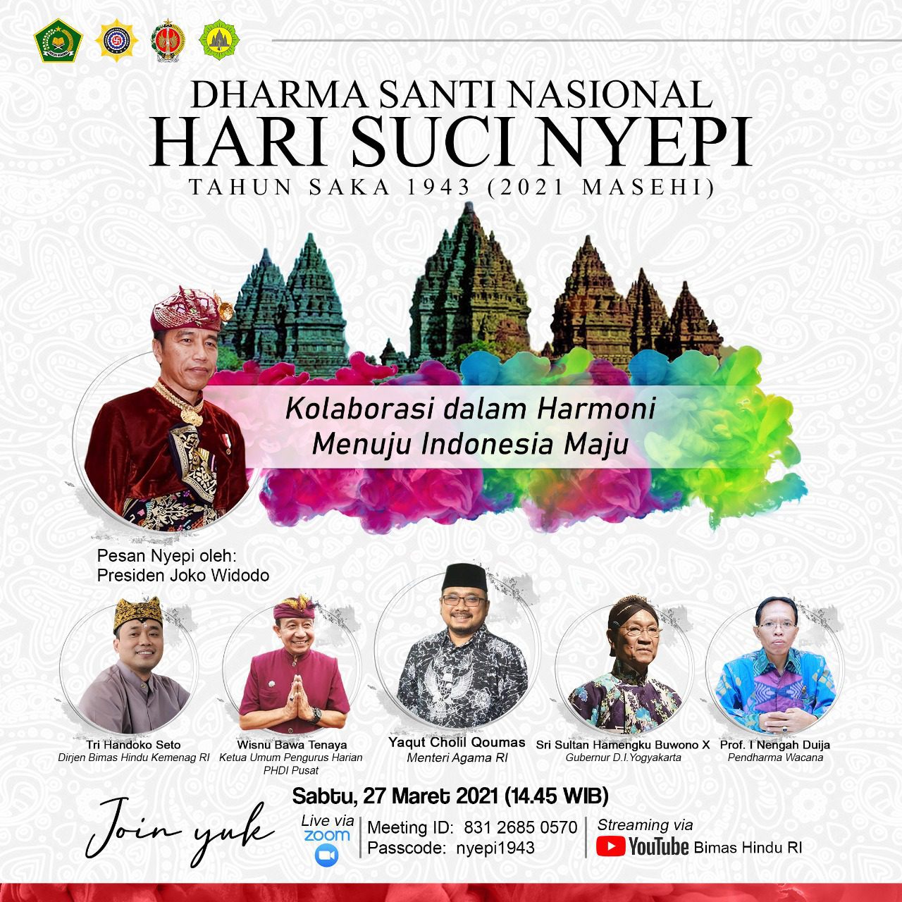 Kegiatan Dharma Santi Perayaan Hari Suci Nyepi Tahun Baru 1943 di Candi Prambanan digelar Ditjen Bimas Hindu Kementerian Agama bekerja sama Parisada Hindu Dharma Indonesia Pusat dan Pemerintah Provinsi Daerah Istimewa Yogyakarta. Kegiatan dilaksanakan secara daring via zoom dan luring dengan tetap menerapkan protokol kesehatan secara ketat.