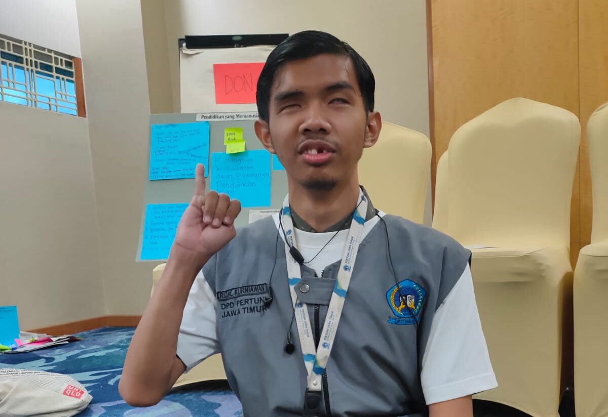 “Kalau dulu saya sekolah di SLB sih, Mas, jadi saya nggak ngalamin pem-bully-an, fasilitas publik pun saya rasa sudah baik ya, terutama di daerah saya tinggal, sudah terdapat guiding block yang bisa bantu saya jalan”.