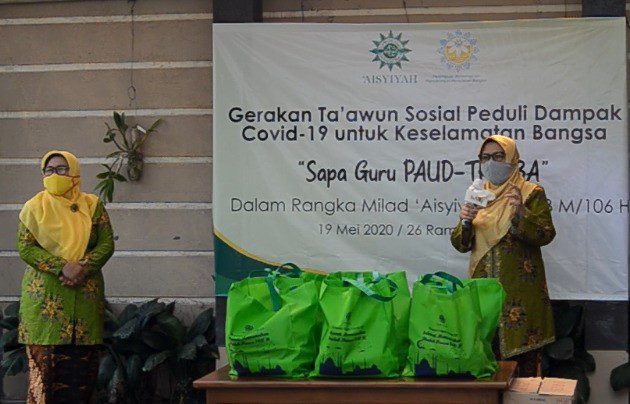 Sebelumnya, Ketua Umum Pimpinan Pusat ‘Aisyiyah, Siti Noordjannah Djohantini, menyerahkan secara simbolis paket Sapa Guru PAUD-TK ABA secara daring di Yogyakarta. Paket Sapa Guru merupakan bagian dari wujud nyata kepedulian ‘Aisyiyah untuk memberikan bantuan bagi mereka yang terdampak situasi pandemi Covid-19.